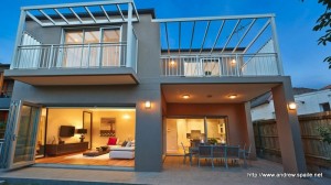 This new house is located on a modest sized site (315 m2). Designed for a growing family this five bedroom, three bathroom home with multiple living spaces and a huge kitchen, makes the most of the sunny, north facing, rear garden.